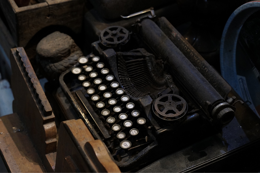 Mesin ketik keramik yang diproduksi sekitar tahun 1940-an, menjadi koleksi di Pasar Antik Asem Kawak, kawasan Kota Lama Semarang, Sabtu (26/11/2022)