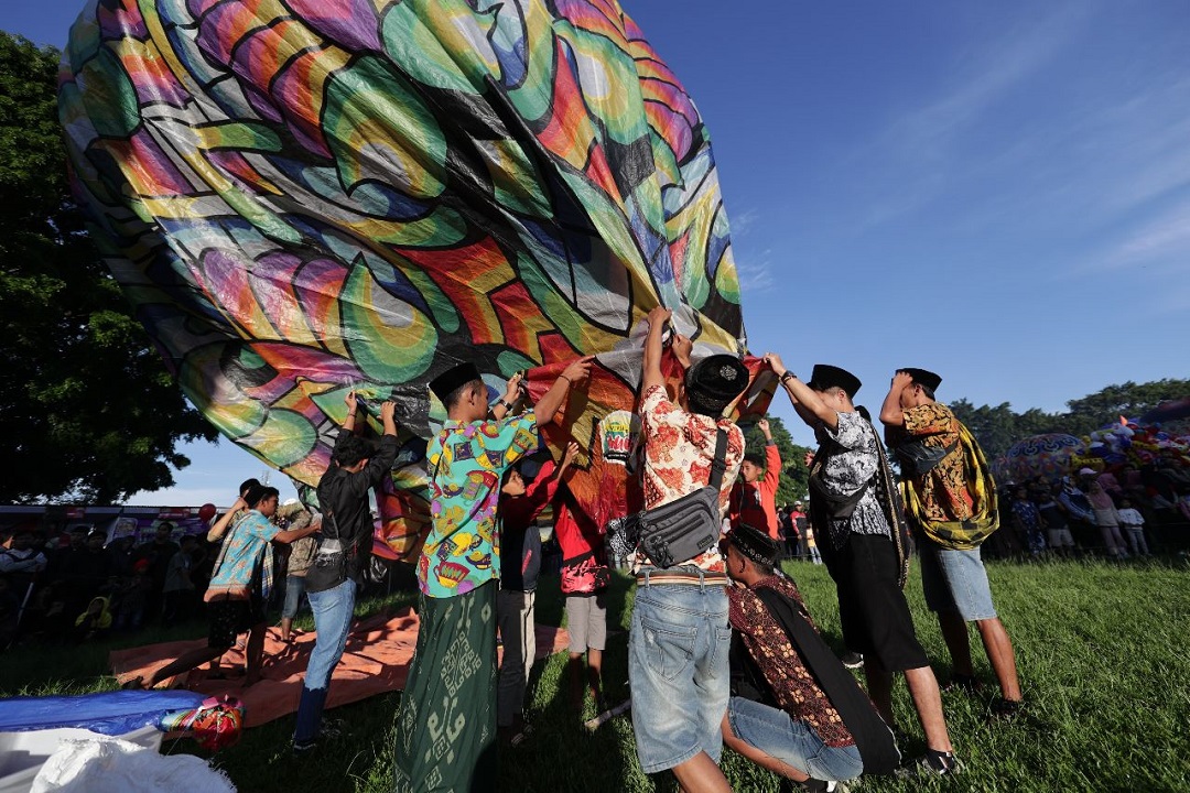 Selain melestarikan tradisi, menerbangkan balon udara juga menjadi daya tarik wisatawan saat mudik karena digelar bertepatan setelah lebaran (30/4/2023)